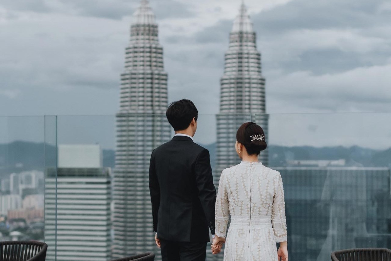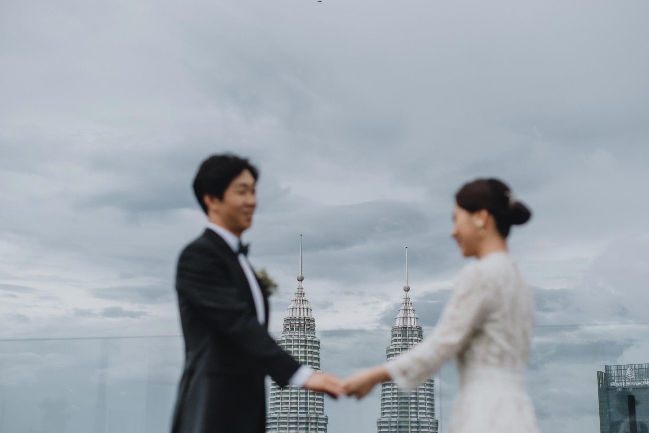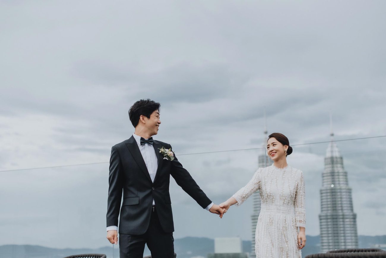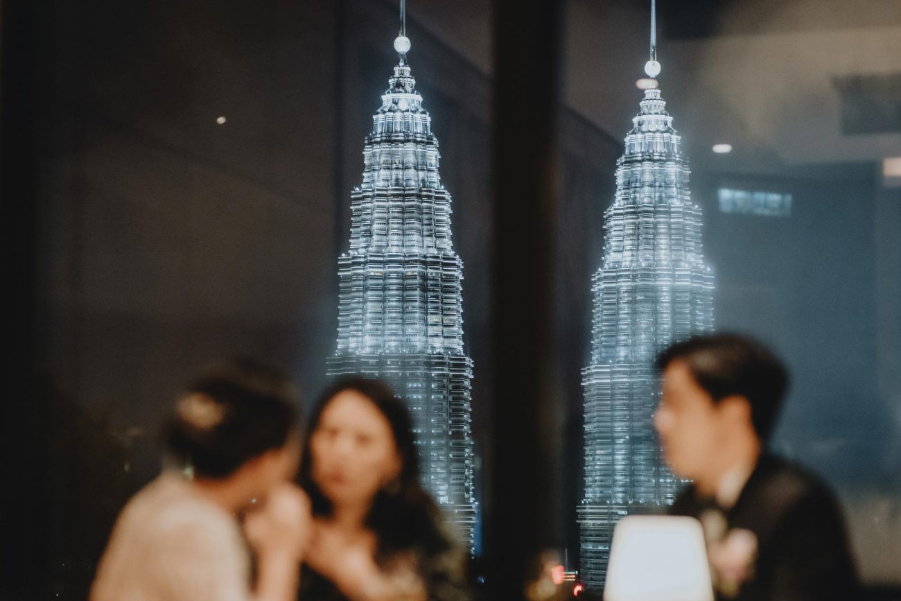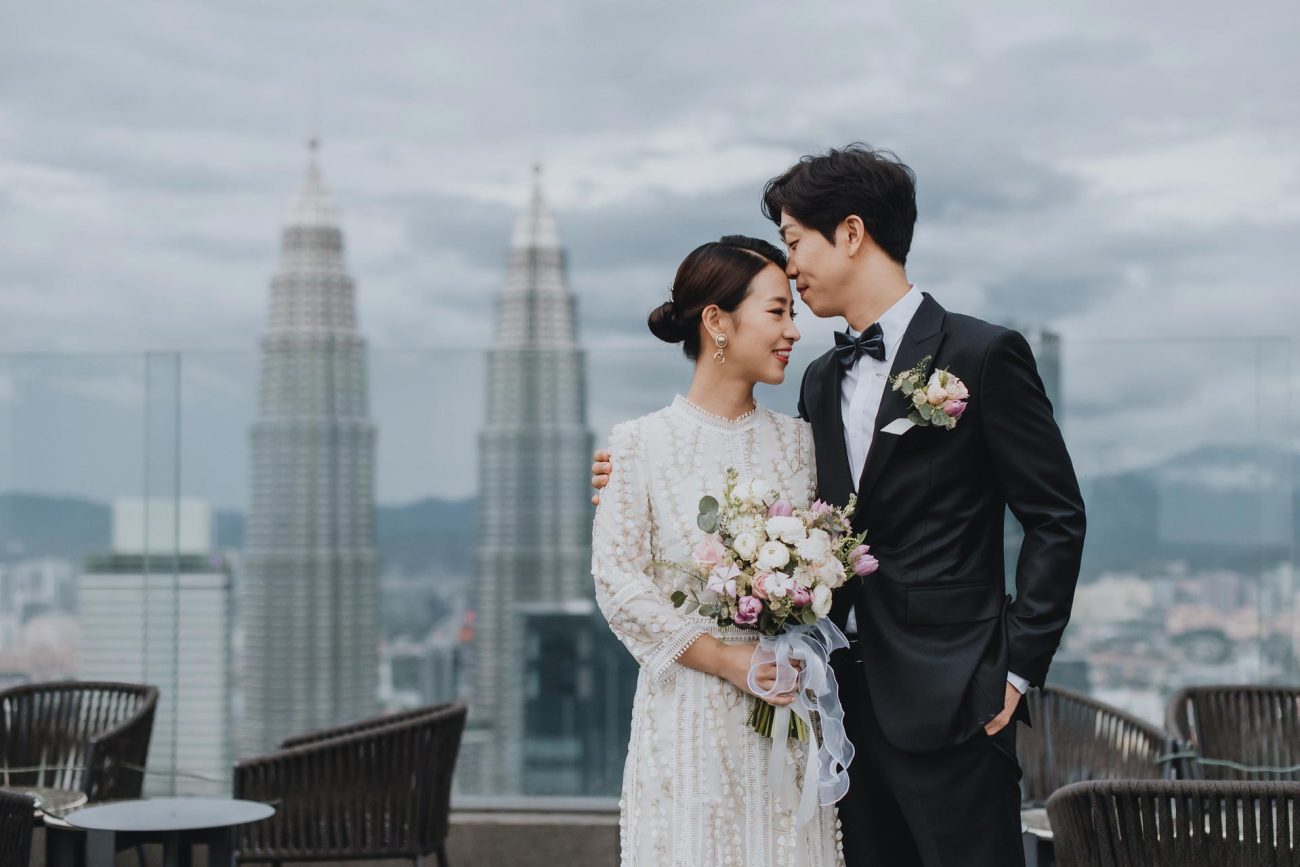 Documenting the wedding of Sun and Loy at the Banyan Tree Hotel was a truly memorable experience. The ceremony took place on the 53rd floor, offering a breathtaking view of Kuala Lumpur’s skyline. The city’s urban chic aesthetic seamlessly blended with the refined elegance of the hotel, creating a picture-perfect backdrop for their special day. The iconic lights of the Petronas Twin Towers illuminated the night, casting a romantic glow over the event and adding to the magic of the moment.